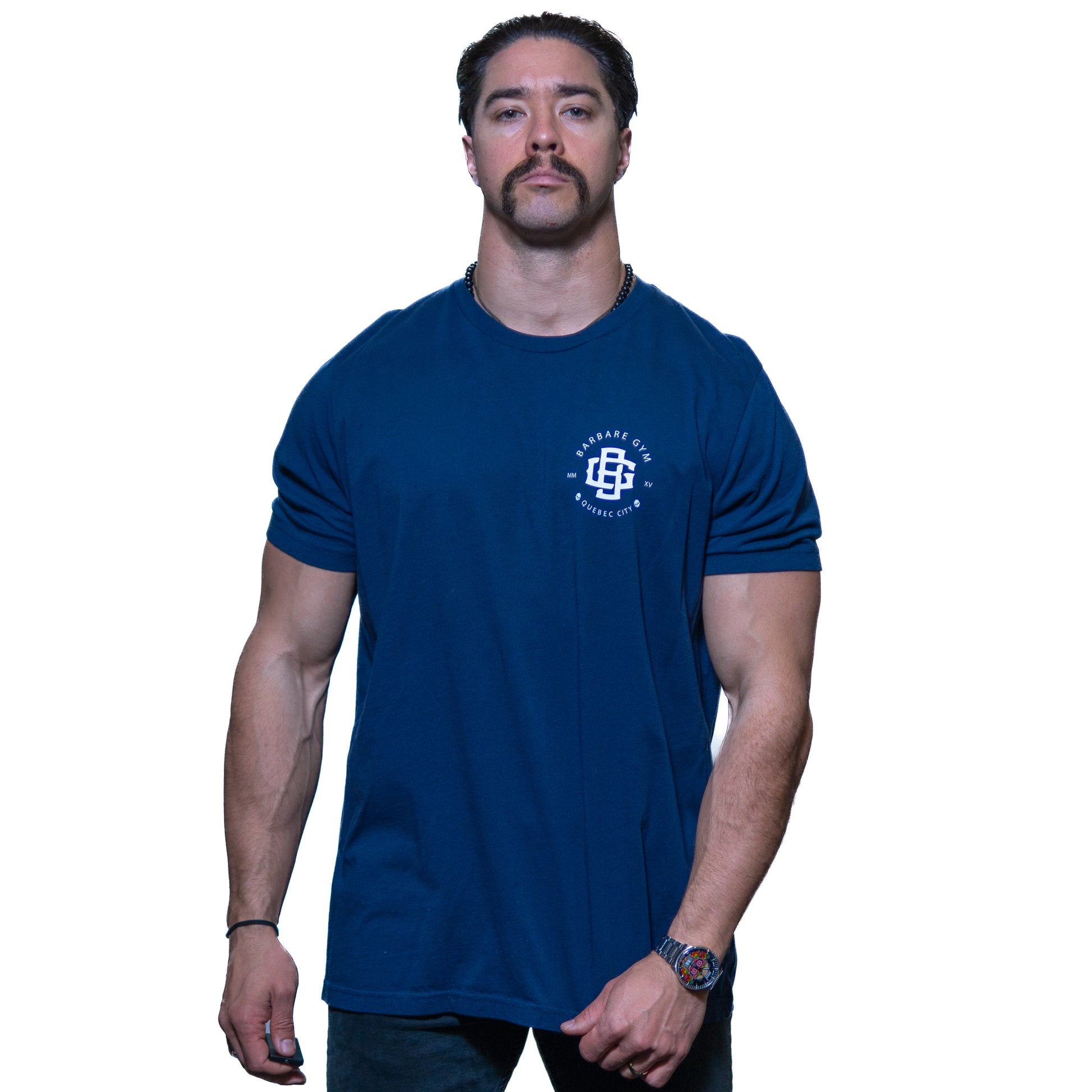 Le plus important dans le choix de nos produits c'est le fit. Le fit a toujours été la priorité. Si il ne te fait pas bien, tu ne vas pas le porter. On utilise ce modèle là de t-shirt depuis le début du Barbare Gym.