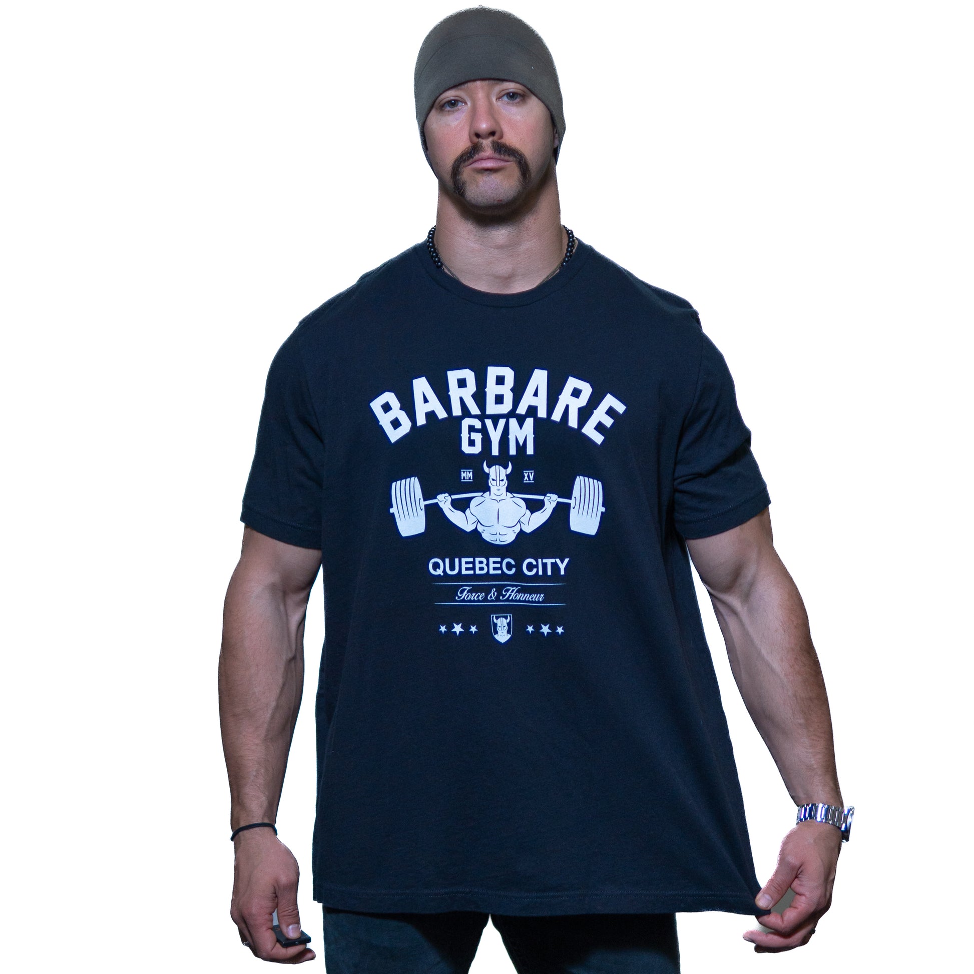 Le plus important dans le choix de nos produits c'est le fit. Le fit a toujours été la priorité. Si il ne te fait pas bien, tu ne vas pas le porter. On utilise ce modèle là de t-shirt depuis le début du Barbare Gym.