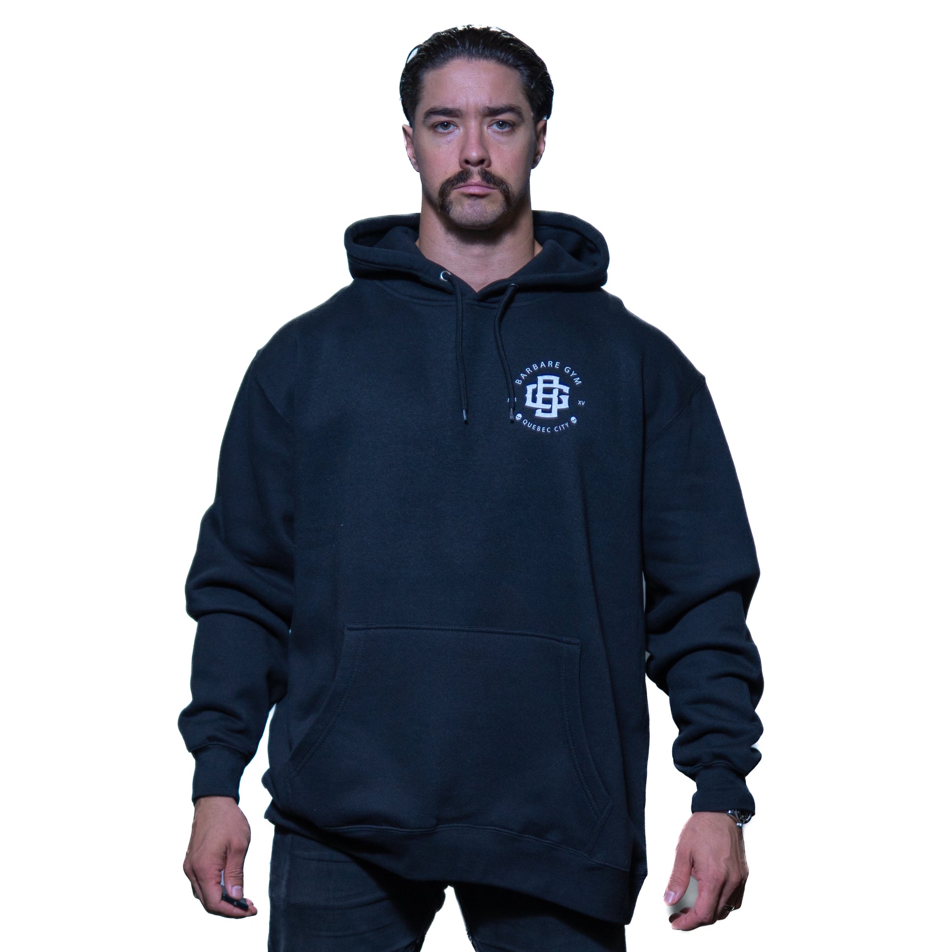 Un hoodie classique avec une tite corde pour serrer le capuchon pis avec une poche devant. L'été, tu vas avoir hâte qu'il fasse froid juste pour pouvoir le remettre.