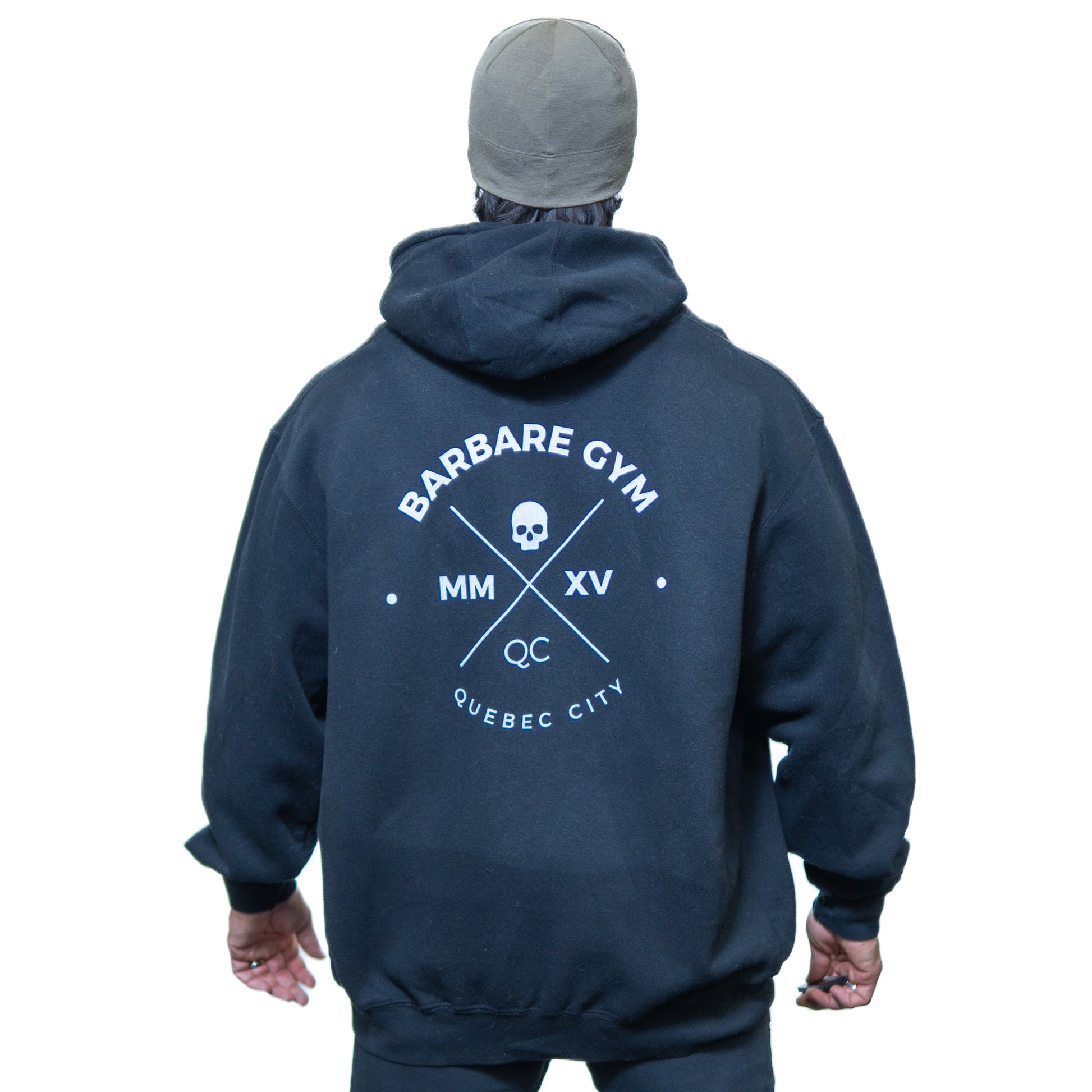 Un hoodie classique avec une tite corde pour serrer le capuchon pis avec une poche devant. L'été, tu vas avoir hâte qu'il fasse froid juste pour pouvoir le remettre.