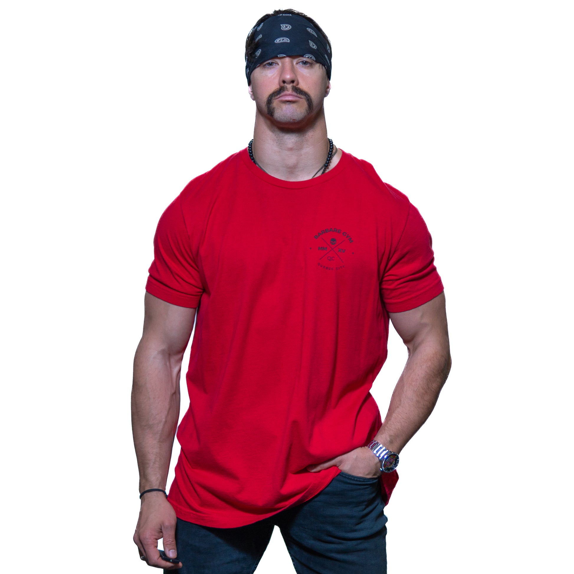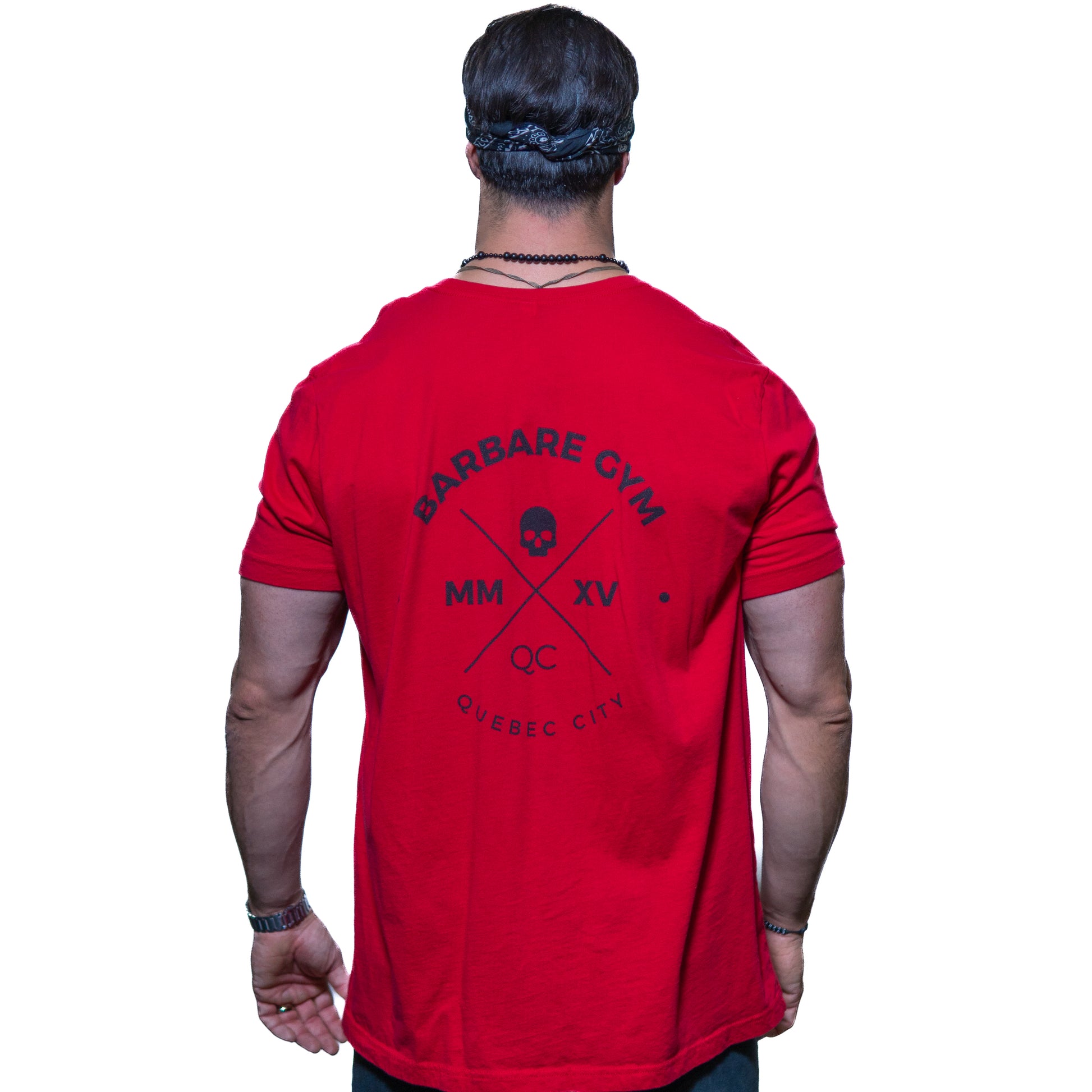Le plus important dans le choix de nos produits c'est le fit. Le fit a toujours été la priorité. Si il ne te fait pas bien, tu ne vas pas le porter. On utilise ce modèle là de t-shirt depuis le début du Barbare Gym.